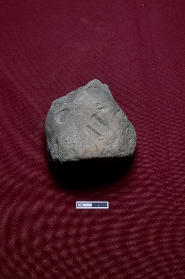 | Description / विवरण | A terracotta seal displays an impression within a circular depression on the obverse side. The reverse side is blank. The object is nearly triangular in shape. |
