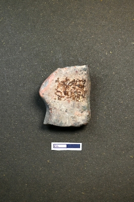 | Description / विवरण | A terracotta plaque depicts a headless female figurine, intact up to the thighs. The left hand is bent and rests on the waist, while the right hand is straight. The figure has a narrow belly that widens toward the waist. |