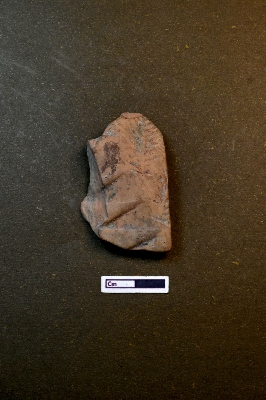 | Description / विवरण | A terracotta plaque displaying a leaf decoration. The rest of the object is missing. |