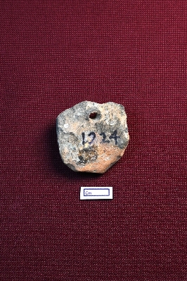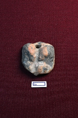 | Description / विवरण | A terracotta plaque shows two human faces, both facing each other. There is a perforation on top. The rest is damaged and unidentified. |