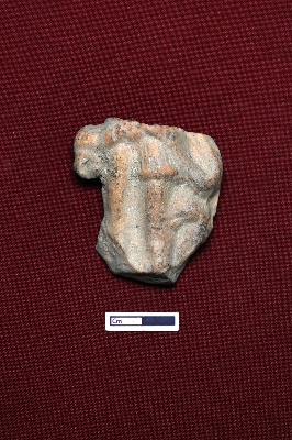 | Description / विवरण | A terracotta showing a lower portion of a human figurine. The object is wearing a decorated cloth. |
