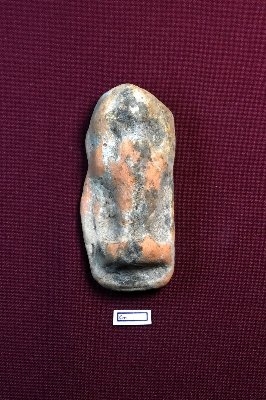 | Description / विवरण | A terracotta fragment showing a human figurine, with only the two legs and a pedestal-like object identifiable. |