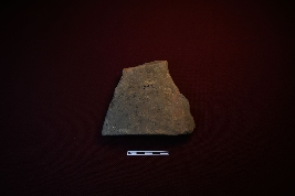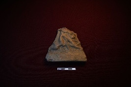 | Description / विवरण | A terracotta plaque depicting the lower part of a Mahishasurmardini. A lion and a man, possibly Mahishasura, are depicted. The lion is biting the man s right hand. |