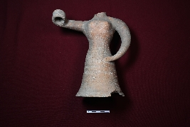 | Description / विवरण | A headless terracotta female figurine. The left hand is half-circular and rests on the waist, while the right hand is stretched and forms a circle at the end, suggesting it was created to hold a stick-like object. The base is flat. |