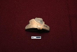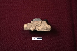 | Description / विवरण | A terracotta plaque depicting the lower part of a human figurine, probably male, seated in the Padmasana posture. His left palm is in an earth-touching position, and he is wearing a dhoti-like garment. A decorated knot is visible. |