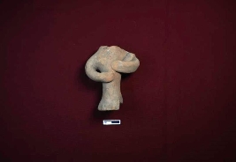 | Description / विवरण | A terracotta headless male figurine, with both hands having circular features. He is holding something in his right hand, and his left hand is placed in front of his belly. The base is flat. |