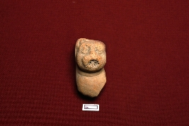 | Description / विवरण | A terracotta animal figurine, with only the face clearly visible. Circular eyes, a large mouth, and a nose are identifiable. The object is hollow. |