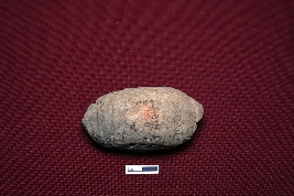 | Description / विवरण | A terracotta seal with a five-line inscription in Proto-Bengali script. On the reverse, one line of inscription is visible. The object is almost oval shape. |