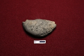 | Description / विवरण | A terracotta seal with a single-line inscription in Proto-Bengali script. On the reverse, nothing is depicted. |