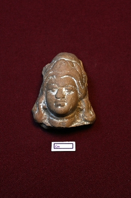 | Description / विवरण | A terracotta head of a male figurine. The object is highly decorated. The facial expression is completely visible, with the nose, eyes, and lips identifiable. Decorated hair is depicted from the top around his face, and a hair knot is placed on top. |