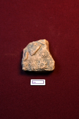 | Description / विवरण | A terracotta decorated plaque shows floral decoration on it. There are three floral motifs. Rest is broken |