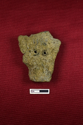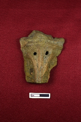 | Description / विवरण | A terracotta plaque showing the face of an animal figurine, likely an elephant. The object is too damaged to fully identify. |