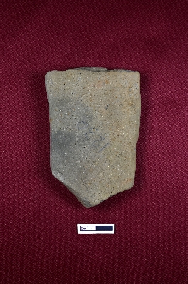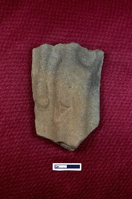 | Description / विवरण | A terracotta plaque depicting a human figurine in a standing posture, though the object is too damaged to identify. |