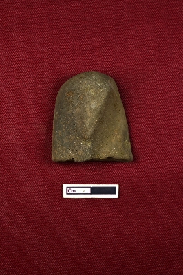 | Description / विवरण | Terracotta plaque representing the head of a human figurine. Rest is not visible. |