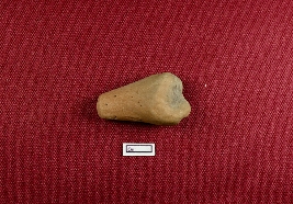 | Description / विवरण | The terracotta stopper has an almost conical shape, with a broken upper part and a rounded lower section. It is red in color and features a smooth surface. |