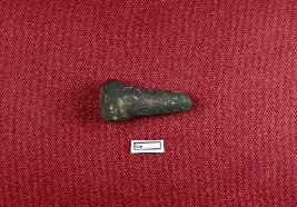 | Description / विवरण | The stopper, made from terracotta, is nearly conical with a flat upper section and a rounded lower one. Its surface is smooth and black in color. |
