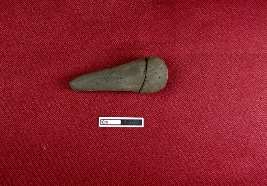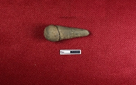 | Description / विवरण | Shaped like a cone, this terracotta stopper has a broken top and a rounded bottom. It is red and has a smooth texture. |