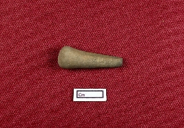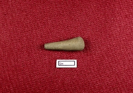| Description / विवरण | This terracotta stopper is almost conical, featuring a flat point at the top and a rounded lower portion. It has a smooth red surface. |