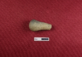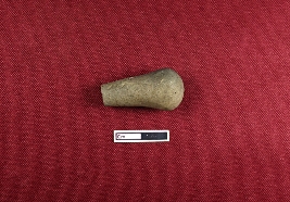 | Description / विवरण | The stopper, made from terracotta, is nearly conical with a broken upper section and a rounded lower one. Its surface is smooth and red in color. |