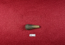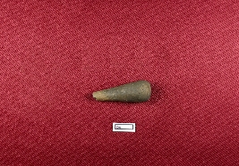 | Description / विवरण | The stopper, made from terracotta, is nearly conical with a broken upper section and a rounded lower one. Its surface is smooth and almost black in color. |