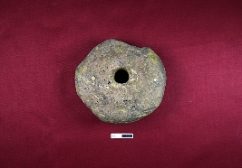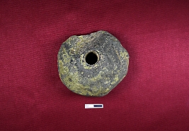 | Description / विवरण | A wheel of a toy cart which is red in colour with smooth surface. The central of the wheel is thick and has a perforation is there. Edges are broken. |