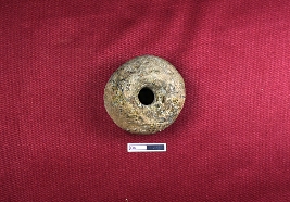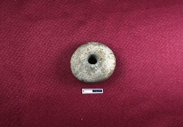 | Description / विवरण | A terracotta wheel of a toy cart which is red in colour with smooth surface. The central of the wheel is thick and has a large perforation is there. |