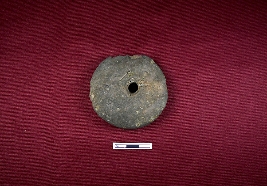 | Description / विवरण | A well decorated terracotta wheel of a toy cart which is almost black in colour with smooth surface. The central of the wheel is thick and has a perforation is there.On the obverse big hole is encircled by four small holes in one side. Edge is broken. |