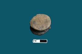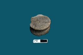 | Description / विवरण | A double-tiered terracotta ear stud. The object is mostly red in color with a smooth surface. Slight chipping can be seen along the edges. |