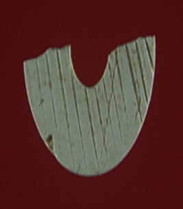 | Description / विवरण | It s a broken bead made of steatite. Surface is smooth and appearance is white. It has some incised lines on its surface. |