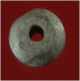| Description / विवरण | Trench WD 2, Qdt 1, layer 1, depth 180x885x11 cms It is a bead made of steatite with a hole through it. Shape is circular, surface is smooth and colour is grey. |