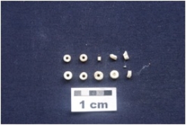 | Description / विवरण | Disc Bead 6 complete Circular in shape and have perforation at the center. Micro Bead 6 complete Tubular in shape and have perforation at the center. Some pieces of Broken Beads. |