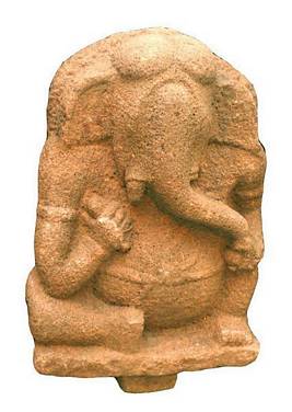 | Description / विवरण | Two armed image of Ganesa with prominent temples. The image seems to be unfinished. The trunk turned left wards and kept the left arm touching the modaka. The right arm rests on the right lap and bent upwards. He is decorated with a keyura and udara-bandha and yajnopavita. The right leg is bent left wards while the left foot rests firmly on the base. |