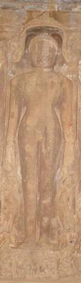 | Description / विवरण | The Jain Tirthankara is seen standing in kayotsarga mudra on a pitha.His body is erect and appear to be motionless and half close eyes which show a beautiful meditative expresion.His curly hair has a usnisa over his head.The figure of a standing camardhari is depicted on either near his legs.Above his head chhatra is shown. Srivatsa symbol is visible on the chest.The image pedestal has no inscription on the pitha but iconographic grounds it can be ascribe of circa 8th century AD.His lanchhan emblem is absent on the pitha, this image is identified as jain tirthankara on the basis of art stlye |
