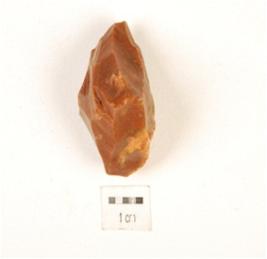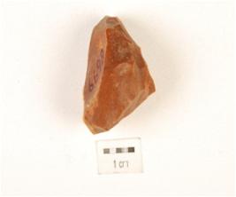 | Description / विवरण | A core made on chert, flake marks on surface, uneven in shape. |