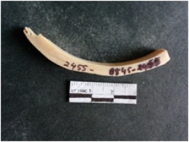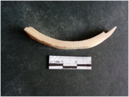 | Description / विवरण | The shell circlet fragment has angular edges and incomplete finish. The pieces pale white in color, and has rectangular cross section. The outer faces are rough while the inside edge has natural polish. |