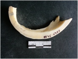 | Description / विवरण | The shell circlet fragment has angular edges and incomplete finish. The pieces pale white in color, and has rectangular cross section. The outer faces are rough while the inside edge has natural polish. |