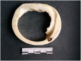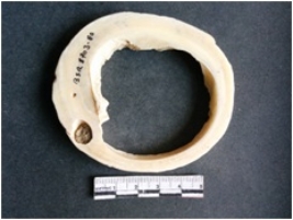 | Description / विवरण | This is a shell circlet with cut edges, unfinished with visible hand touches. |
