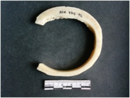 | Description / विवरण | This is a shell circlet with cut edges, unfinished with visible hand touches. |