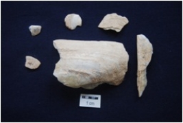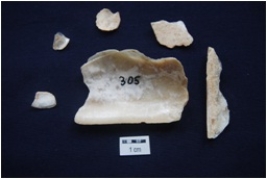 | Description / विवरण | Fragments of unmodified shell glossy surface on interior, slightly weathered. |