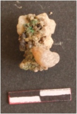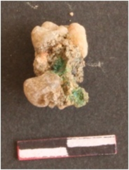 | Description / विवरण | It is a copper object, it is corroded and green in color. The soil inerutation can be clearly seen on the surface of the object. |