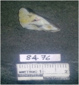 | Description / विवरण | This is a fragment of smoky quartz, covered with cortex on one side, crystalline and flakes has been removed. Smoother edges. |