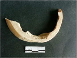 | Description / विवरण | The shell circlet fragment has angular edges and incomplete finish. The pieces pale white in color, and has rectangular cross section. The outer faces are rough while the inside edge has natural polish. |