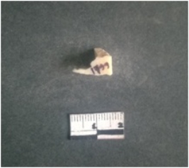 | Description / विवरण | The shell circlet fragment has angular edges and incomplete finish. The pieces pale white in color, and has rectangular cross section. The outer faces are rough while the inside edge has natural polish. |