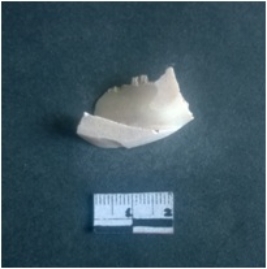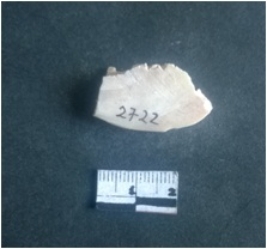 | Description / विवरण | The shell circlet fragment has angular edges and incomplete finish. The pieces pale white in color, and has rectangular cross section. The outer faces are rough while the inside edge has natural polish. |