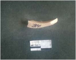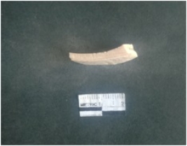 | Description / विवरण | The shell circlet fragment has angular edges and incomplete finish. The pieces pale white in color, and has rectangular cross section. The outer faces are rough while the inside edge has natural polish. |