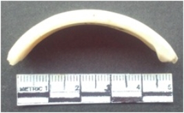 | Description / विवरण | It is a shell bangle fragment, finished and polished, broken. Traingular in section and white in color. |