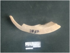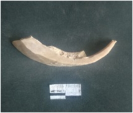 | Description / विवरण | The shell circlet fragment has angular edges and incomplete finish. The pieces pale white in color, and has rectangular cross section. The outer faces are rough while the inside edge has natural polish. |