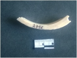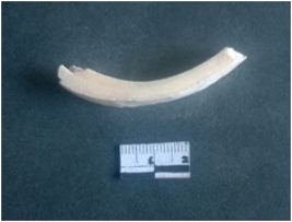| Description / विवरण | The shell circlet fragment has angular edges and incomplete finish. The pieces pale white in color, and has rectangular cross section. The outer faces are rough while the inside edge has natural polish. |