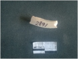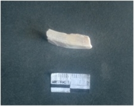 | Description / विवरण | The shell circlet fragment has angular edges and incomplete finish. The pieces pale white in color, and has rectangular cross section. The outer faces are rough while the inside edge has natural polish. |