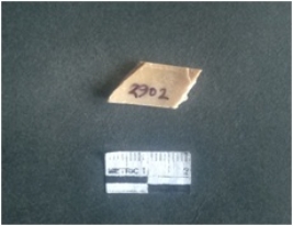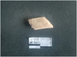 | Description / विवरण | The shell circlet fragment has angular edges and incomplete finish. The pieces pale white in color, and has rectangular cross section. The outer faces are rough while the inside edge has natural polish. |